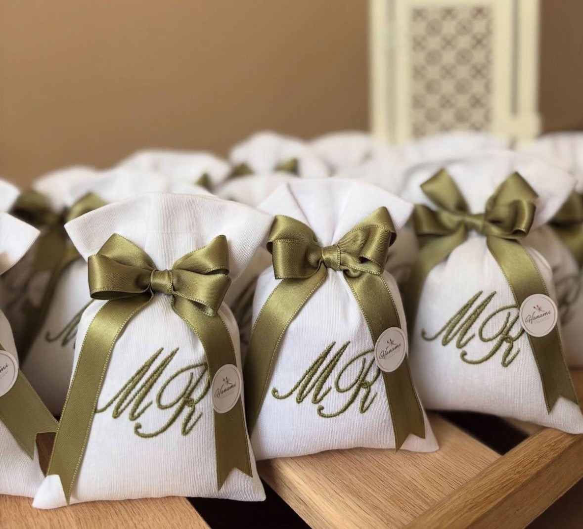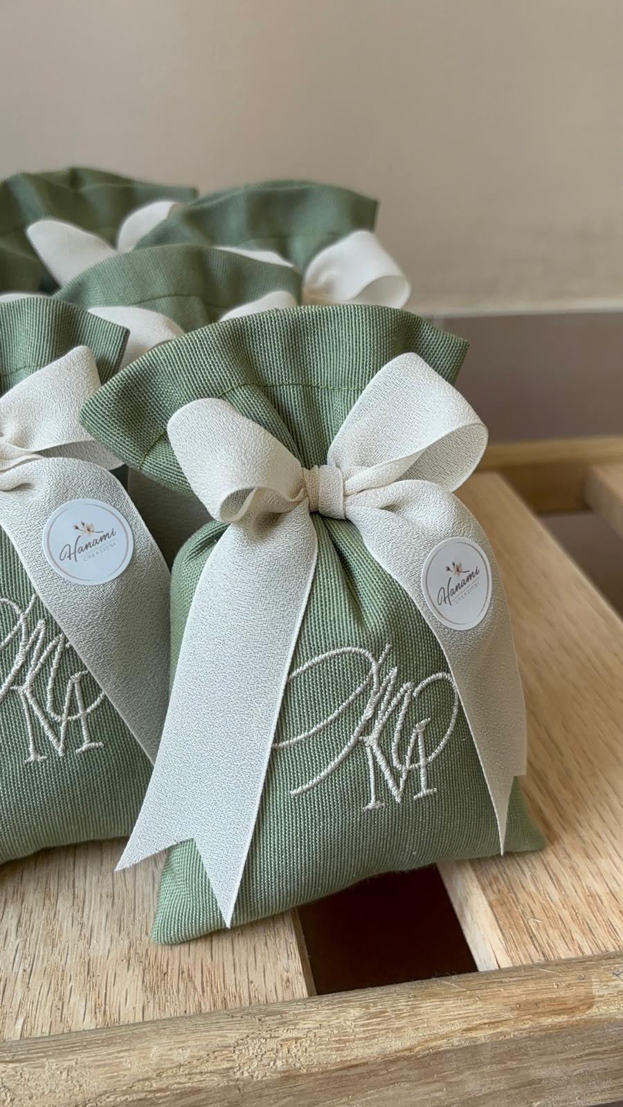 Realizzati interamente a mano utilizzando tessuti adatti all'evento: PURO LINO e 100% COTONE
