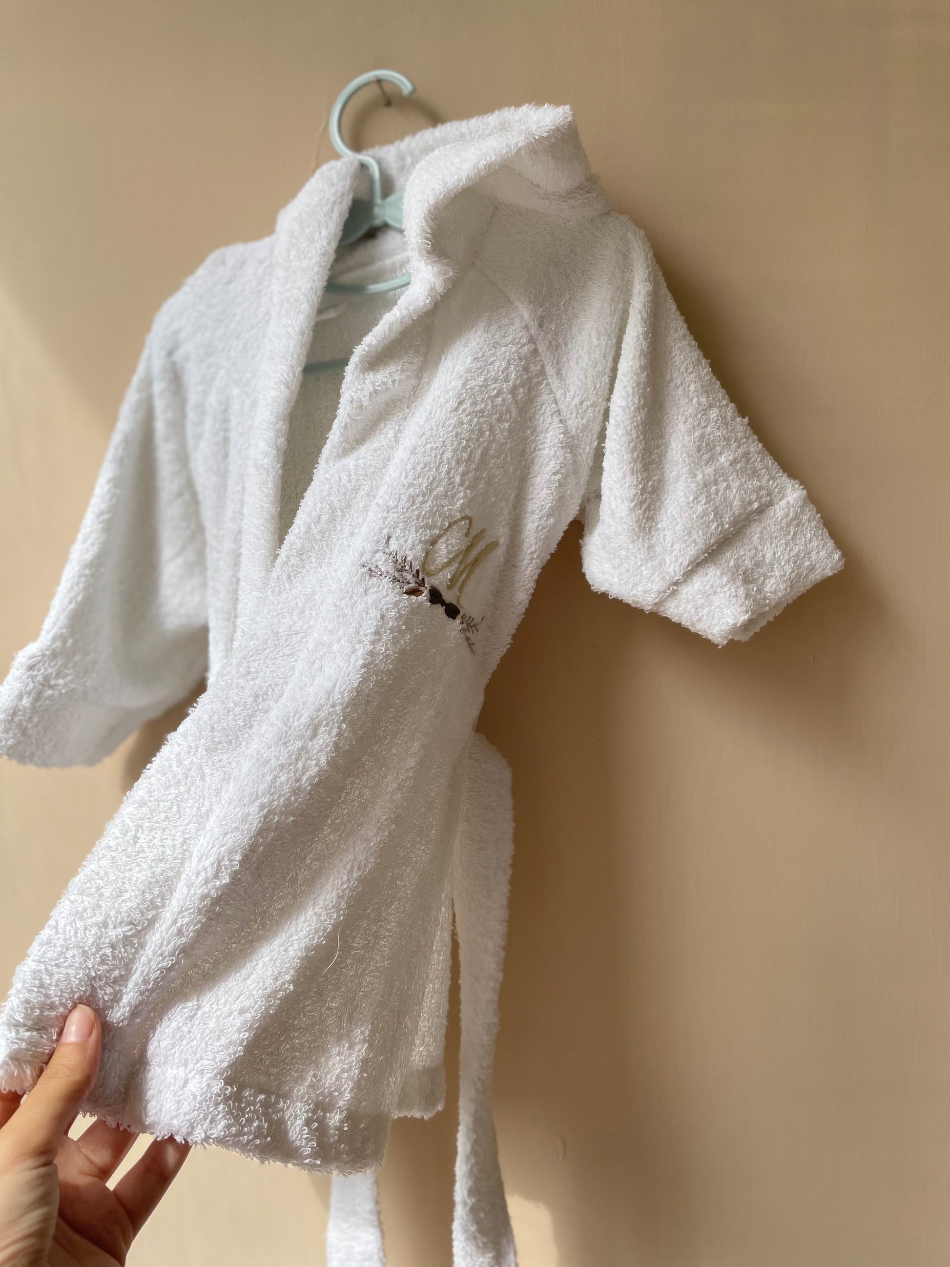Dopo il bagnetto tieni il tuo bambino comodo con il nostro morbido accappatoio realizzato in spugna di cotone e personalizzato con iniziale ricamata.