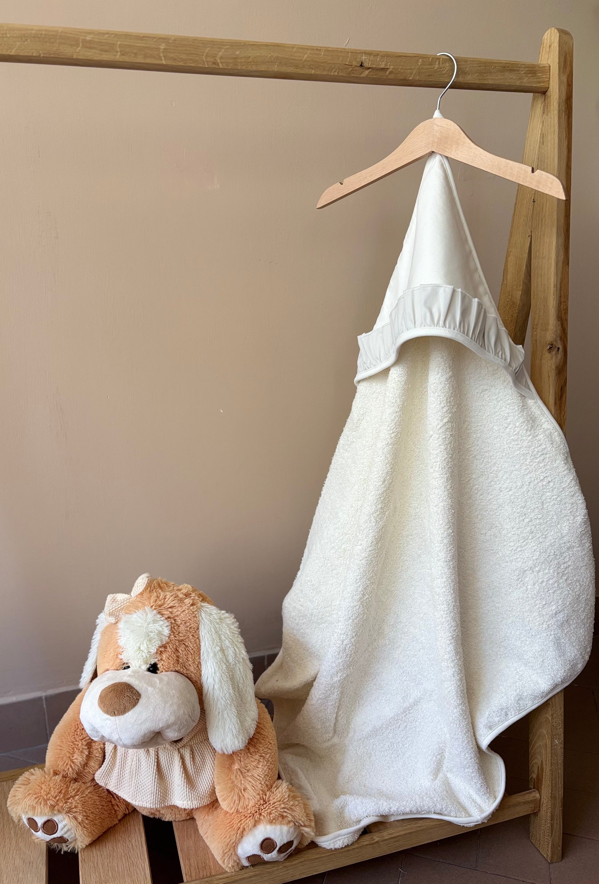 Dopo il bagnetto tieni il tuo bambino comodo con il nostro morbido accappatoio in spugna di cotone