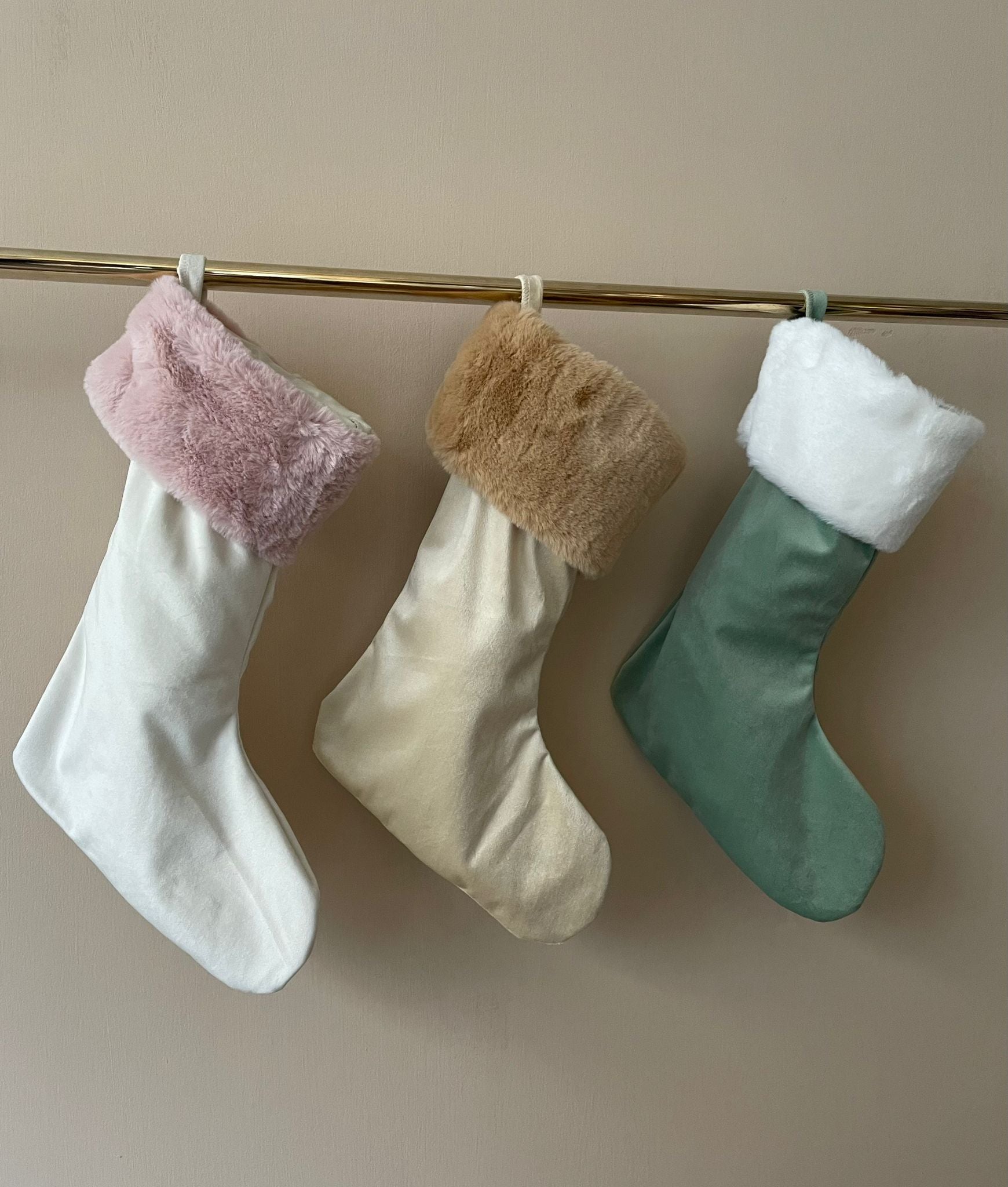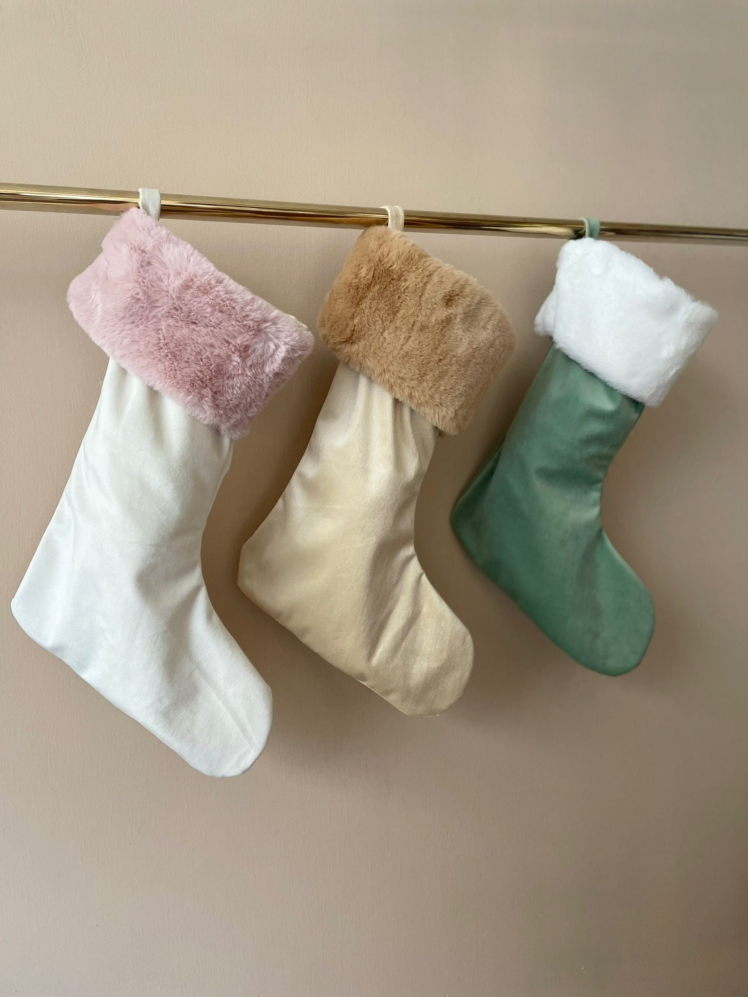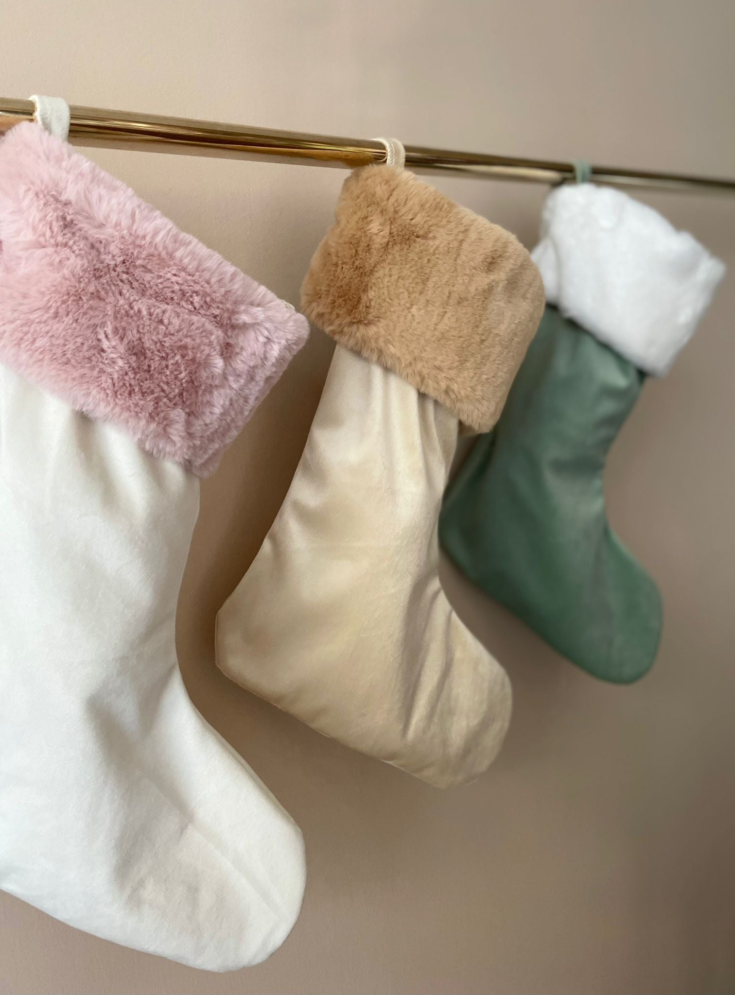 Calza realizzata interamente a mano con velluto ed impreziosita con pelliccia