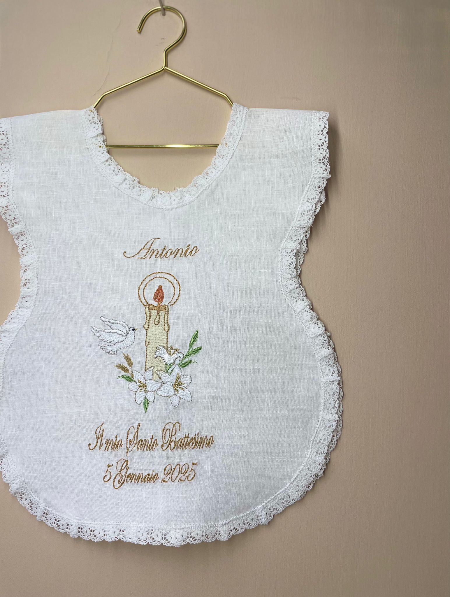 Camicino battesimale realizzabile in puro lino o 100% cotone. Personalizzato con ricamo a macchina. Taglia unica.