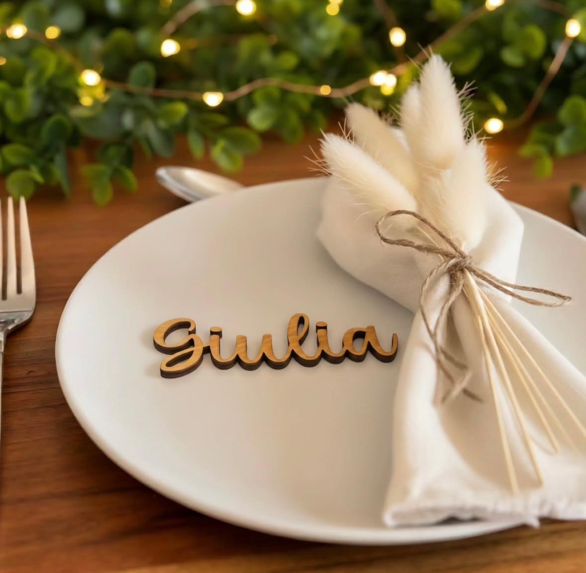 Nome segnaposto in legno naturale. Dimensione 10cm.
