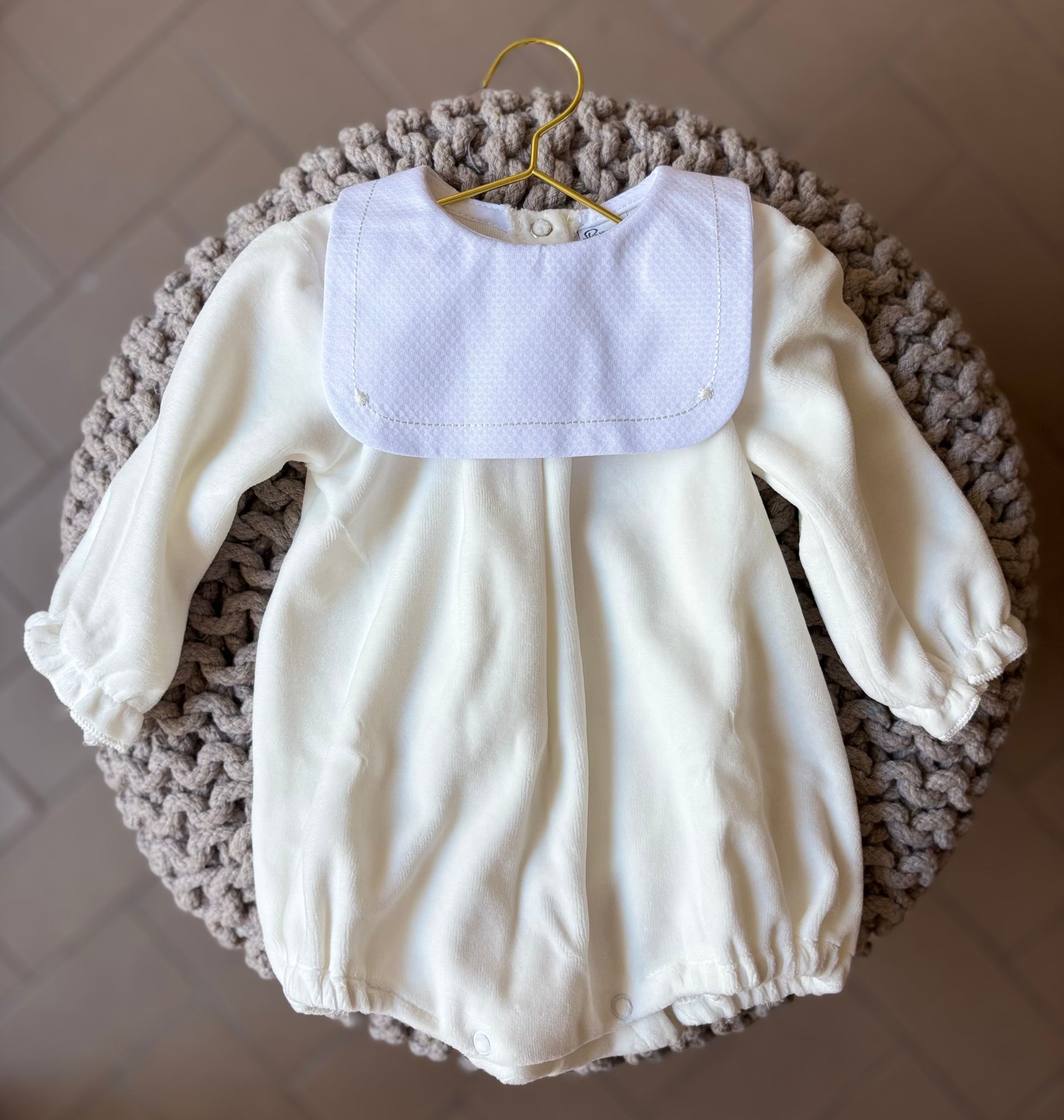 Pagliaccetto in ciniglia morbido e soffice realizzato in Italia con tessuti di alta qualità e perfetto per coccolare il tuo neonato. Lo scollo nuvola aggiunge un tocco di dolcezza ed eleganza. Facile da indossare grazie all'apertura con clip sul retro.