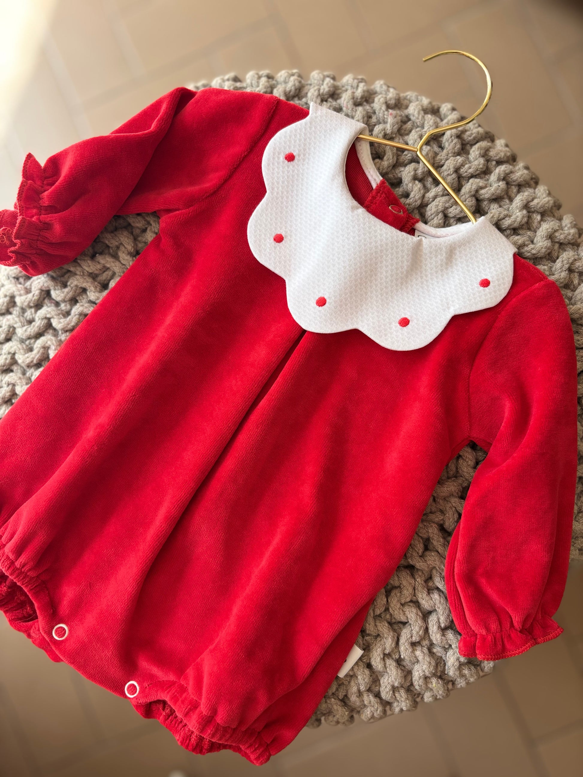 Pagliaccetto in ciniglia morbido e soffice realizzato in Italia con tessuti di alta qualità e perfetto per coccolare il tuo neonato. Lo scollo nuvola aggiunge un tocco di dolcezza ed eleganza. Facile da indossa grazie all'apertura con clips sul retro.