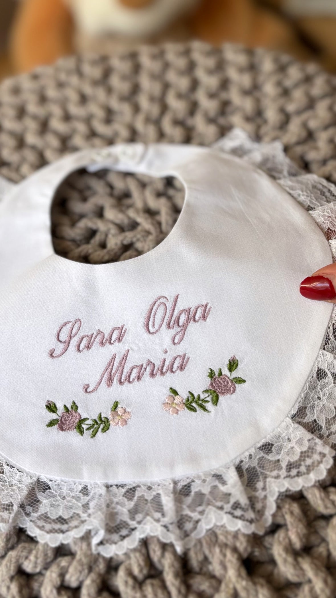 Bavetta in puro lino bianco o cotone 100% personalizzata con nome ricamato