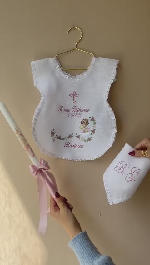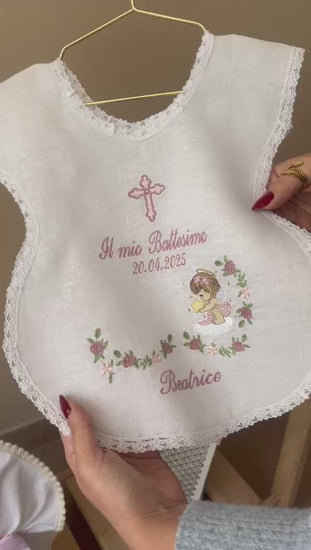 Camicino battesimale realizzabile in puro lino o 100% cotone. Personalizzato con ricamo a macchina. Taglia unica.
