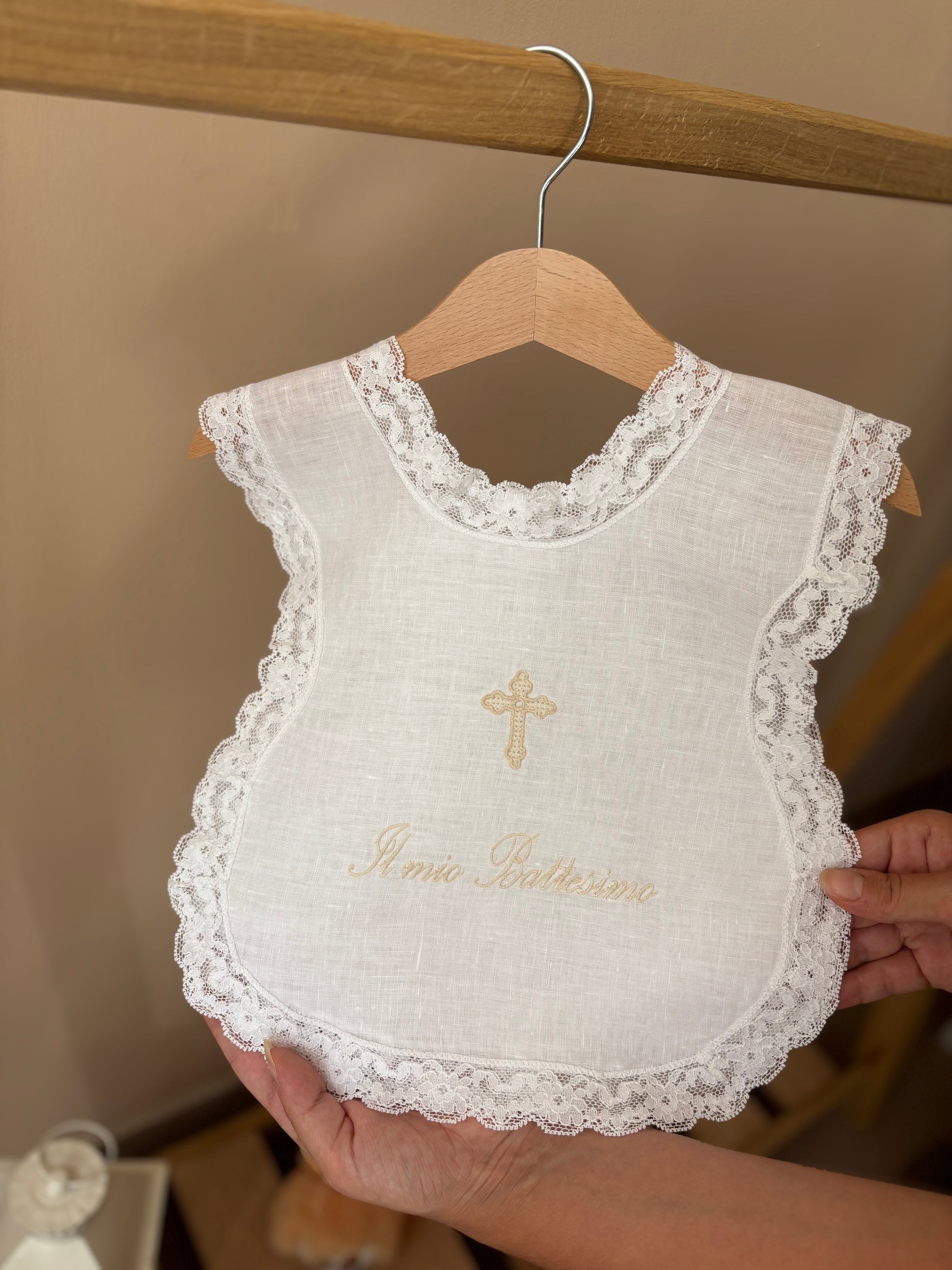 Camicino battesimale realizzabile in puro lino o 100% cotone. Personalizzato con ricamo a macchina. Taglia unica.