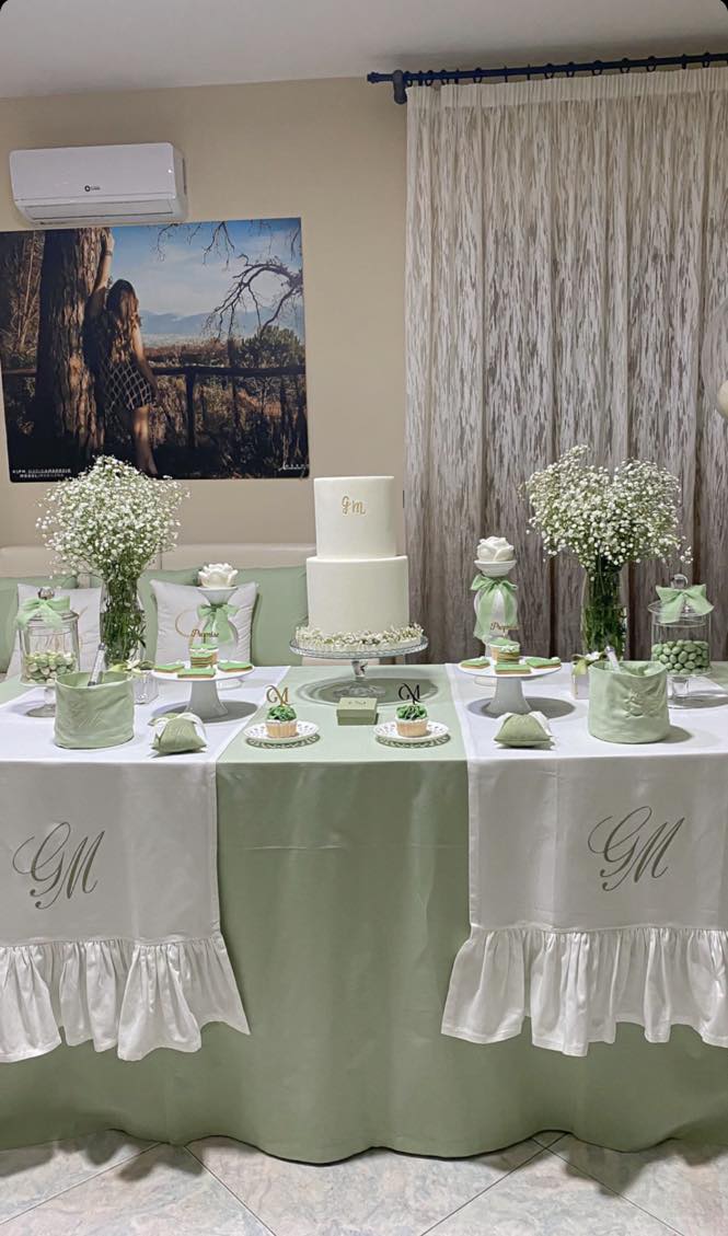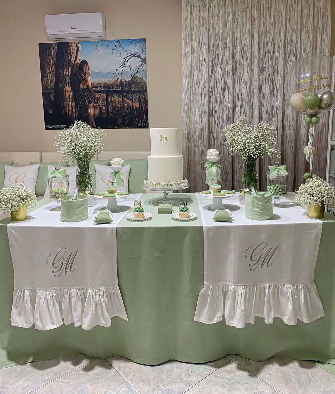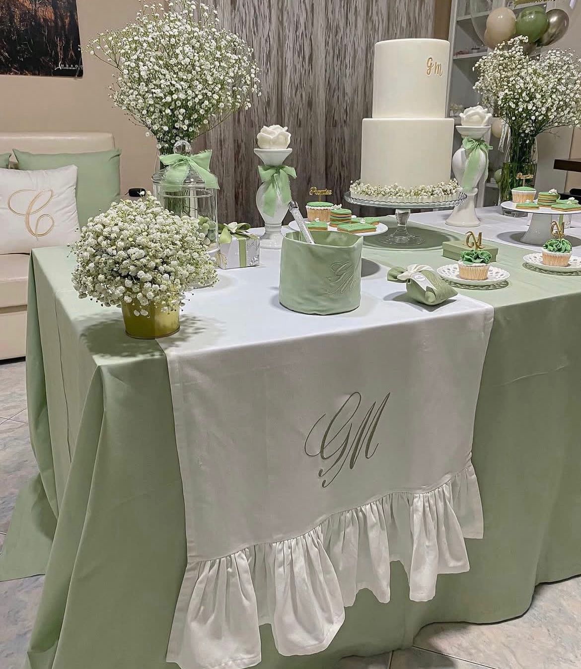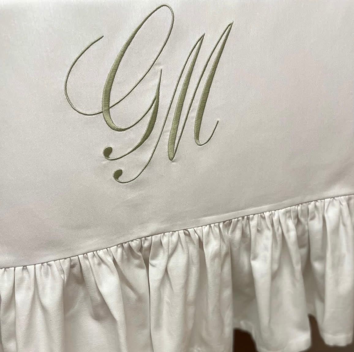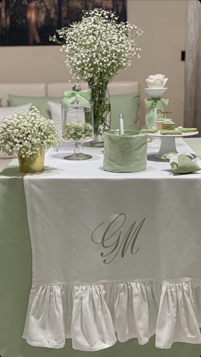Runner in cotone realizzato interamente a mano. Le estremità presentano una romantica ed elegante rouche. Inoltre, l’articolo è personalizzato con due grandi iniziali ricamate a macchina.