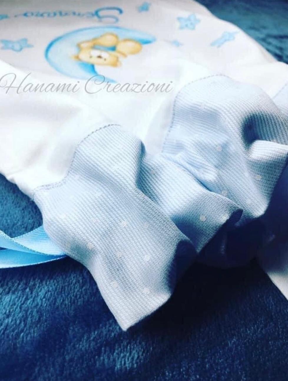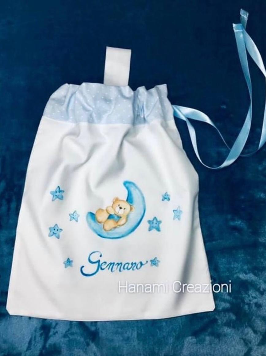 Sacca primo cambio in cotone personalizzata con dipinto a mano. (N.B. è possibile realizzare anche la variante rosa).