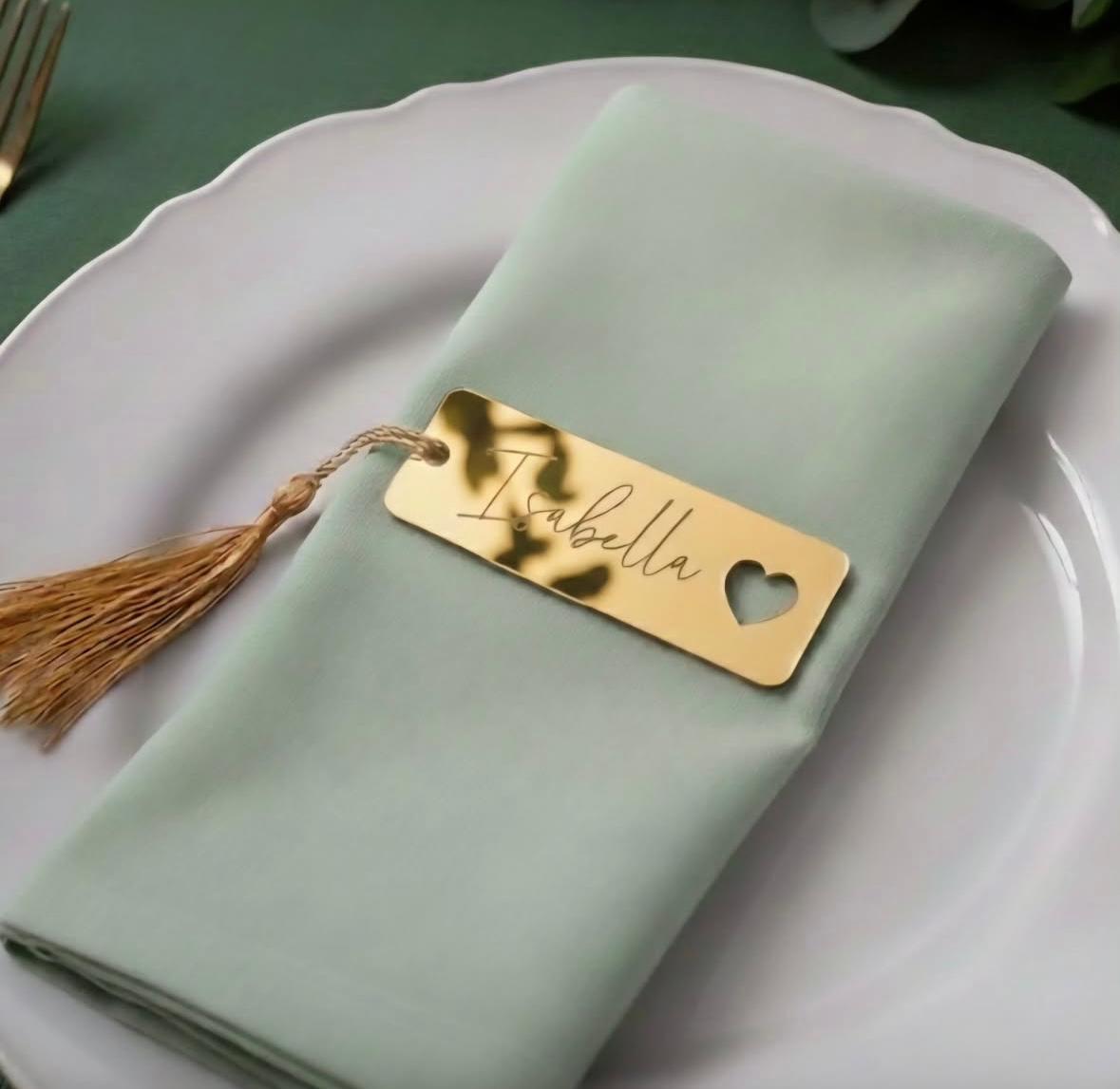 Segnaposto in plexiglass personalizzato con cuore e nome.