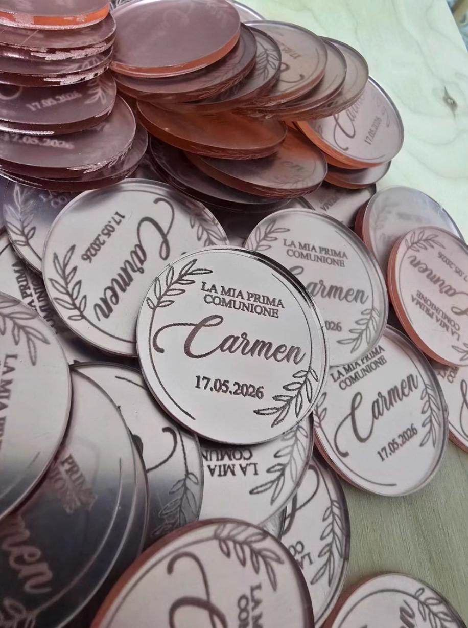 Le frasi da poter incidere sono: "La mia prima Comunione", "Il primo compleanno di ...", E' nato/a ..."