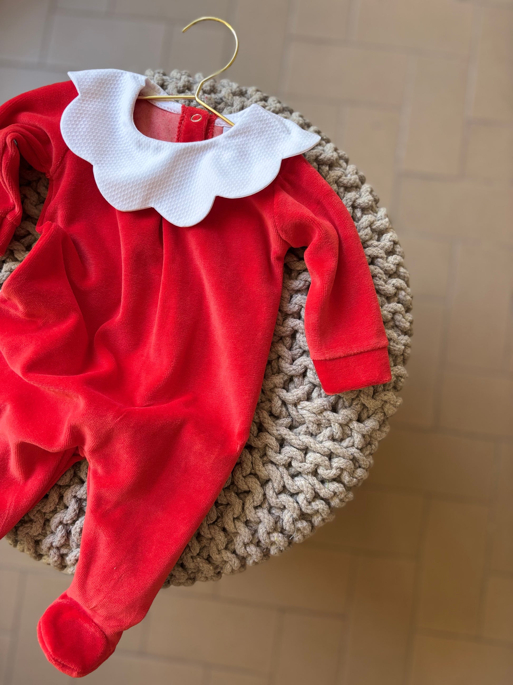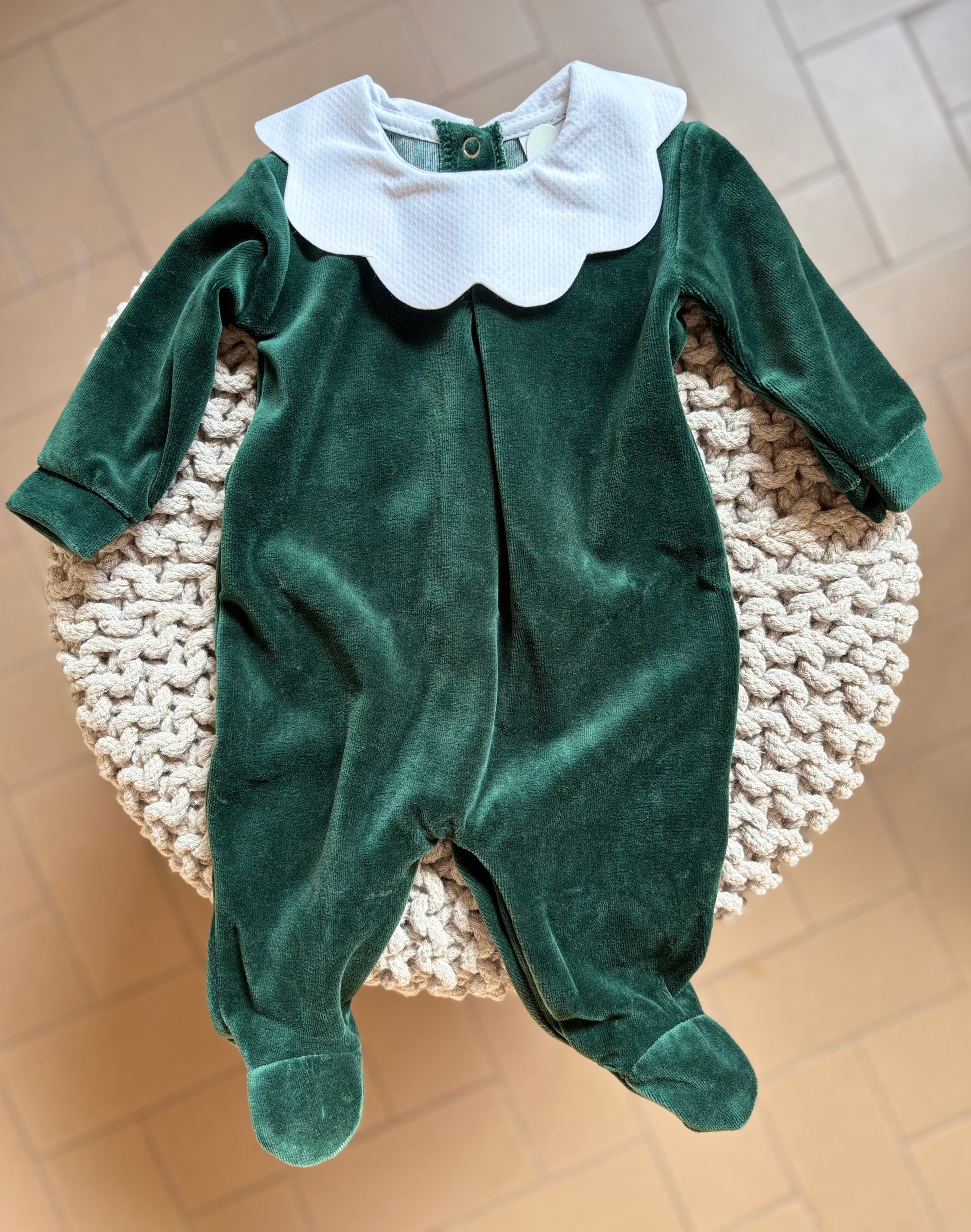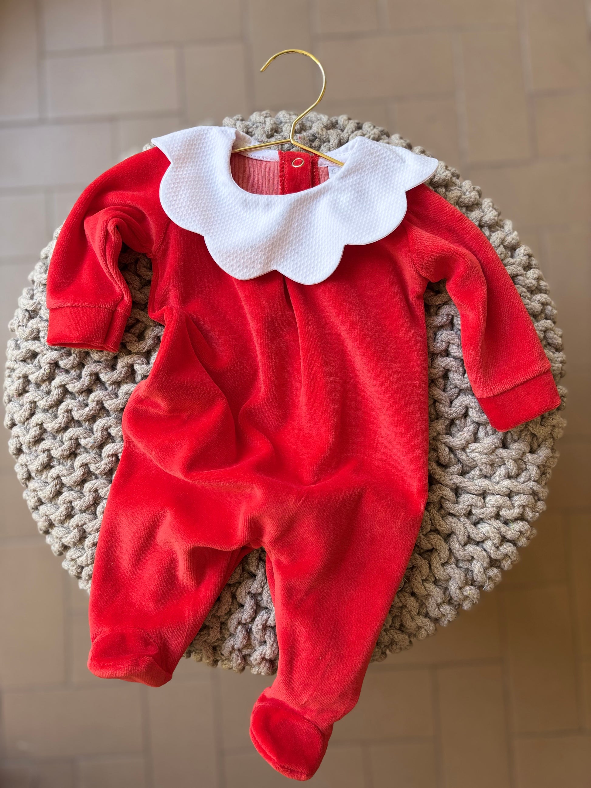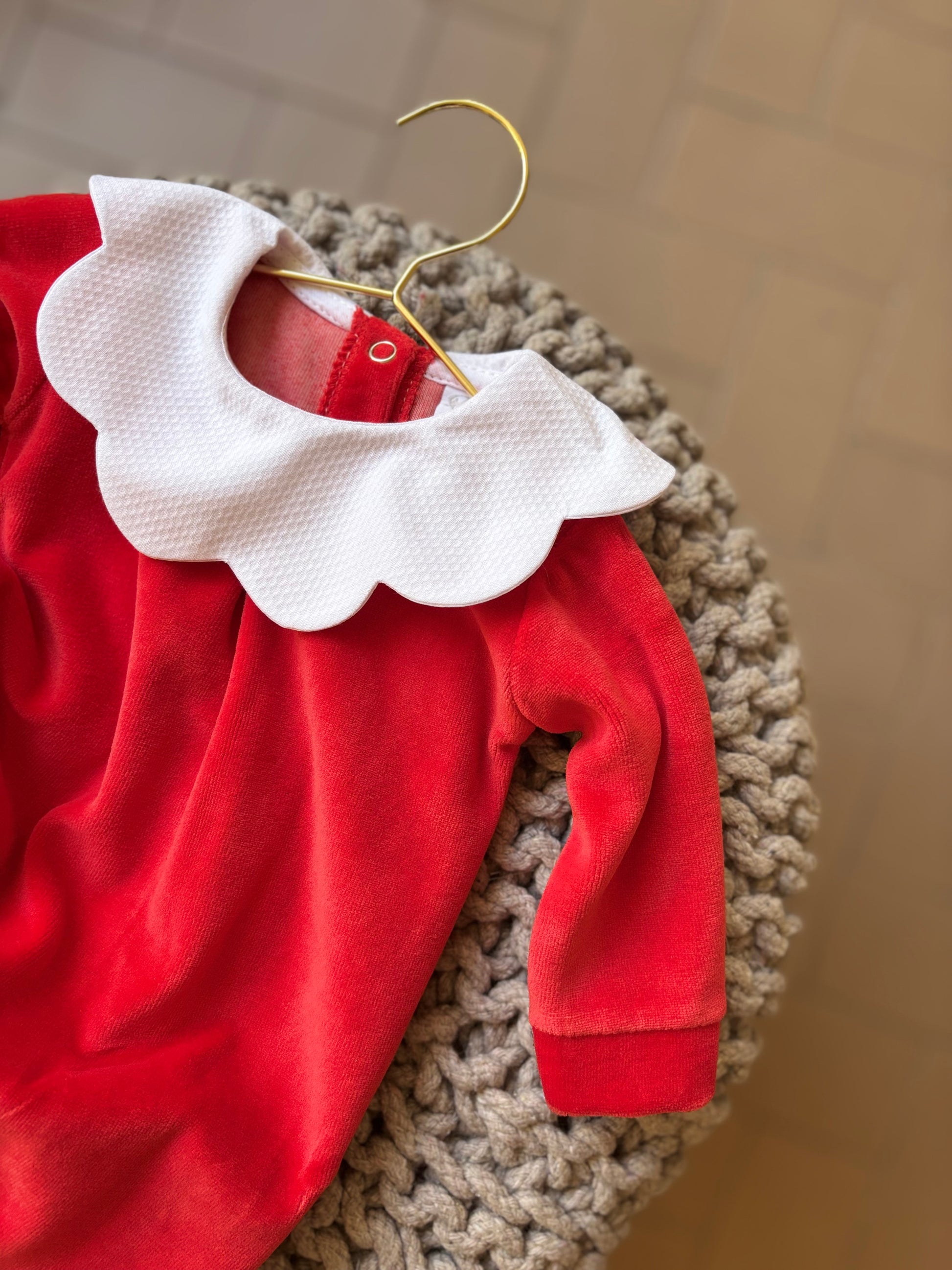 Tutina in ciniglia morbida e soffice realizzata in Italia con tessuti di alta qualità e perfetta per coccolare il tuo neonato. Lo scollo nuvola aggiunge un tocco di dolcezza ed eleganza. Facile da indossa grazie all'apertura con clips sul retro.